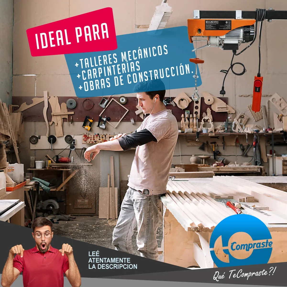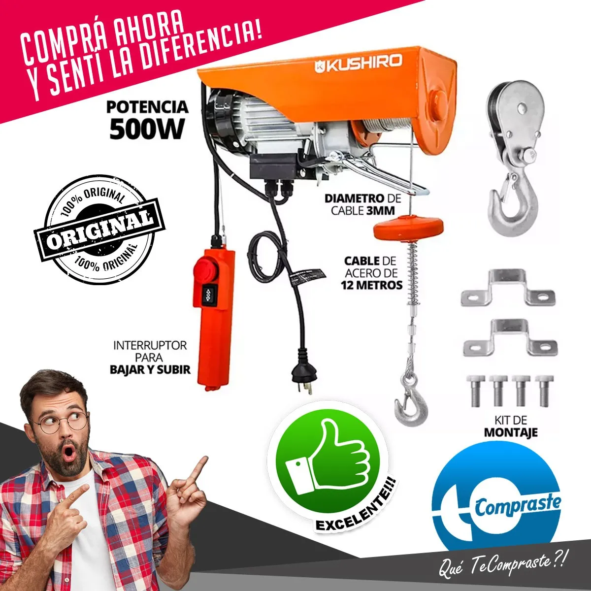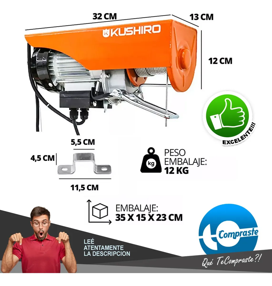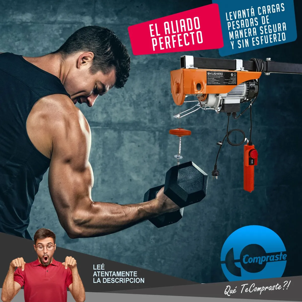 El aparejo eléctrico Kushiro AEK 250D es el aliado perfecto para levantar cargas pesadas de manera segura y sin esfuerzo. Su potencia de 500W y capacidad de hasta 250 kg lo convierten en una herramienta indispensable para talleres, obras, galpones y hasta para uso doméstico cuando las cosas se ponen pesadas.