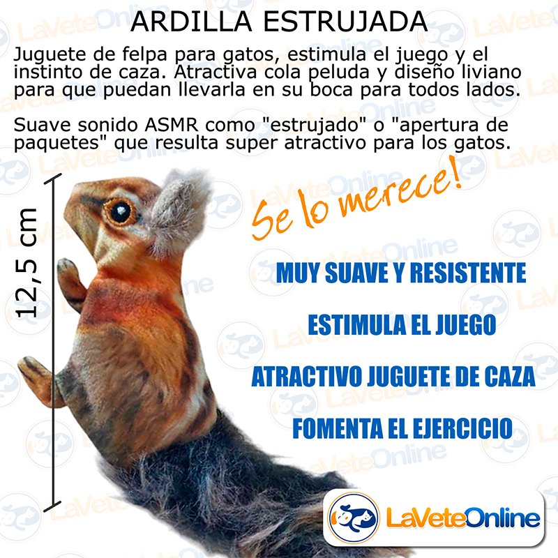 Juguete de felpa para gatos, estimula el juego y el instinto de caza. Atractiva cola peluda y diseño liviano para que puedan llevarla en su boca para todos lados.