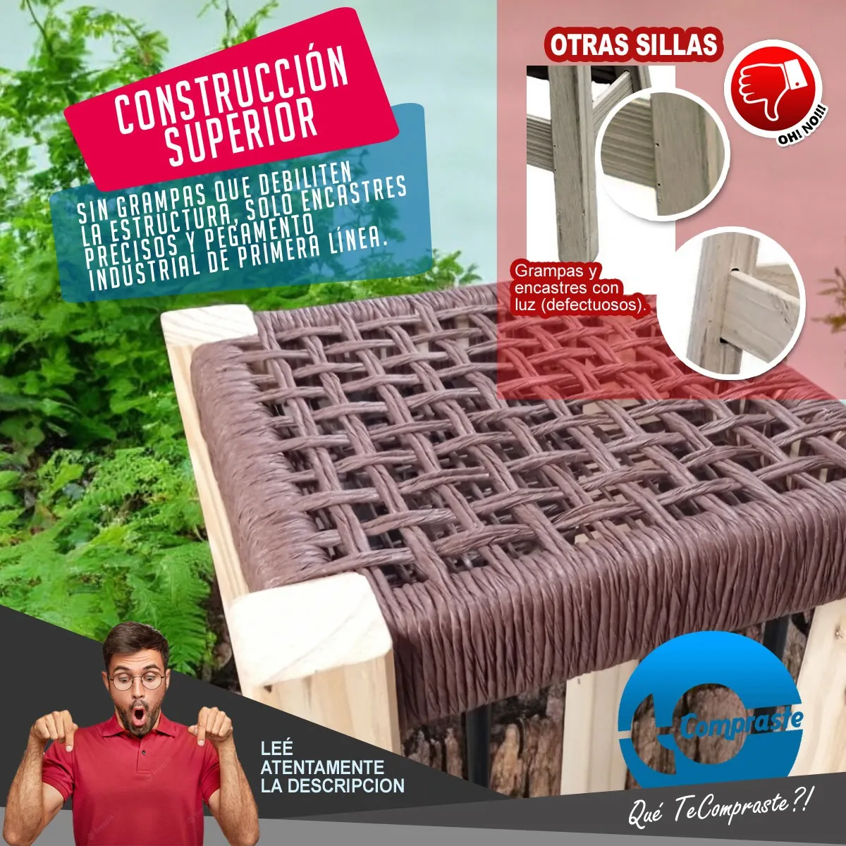 * Asiento encordado artesanal, cómodo, resistente y con estilo. Color Chocolate