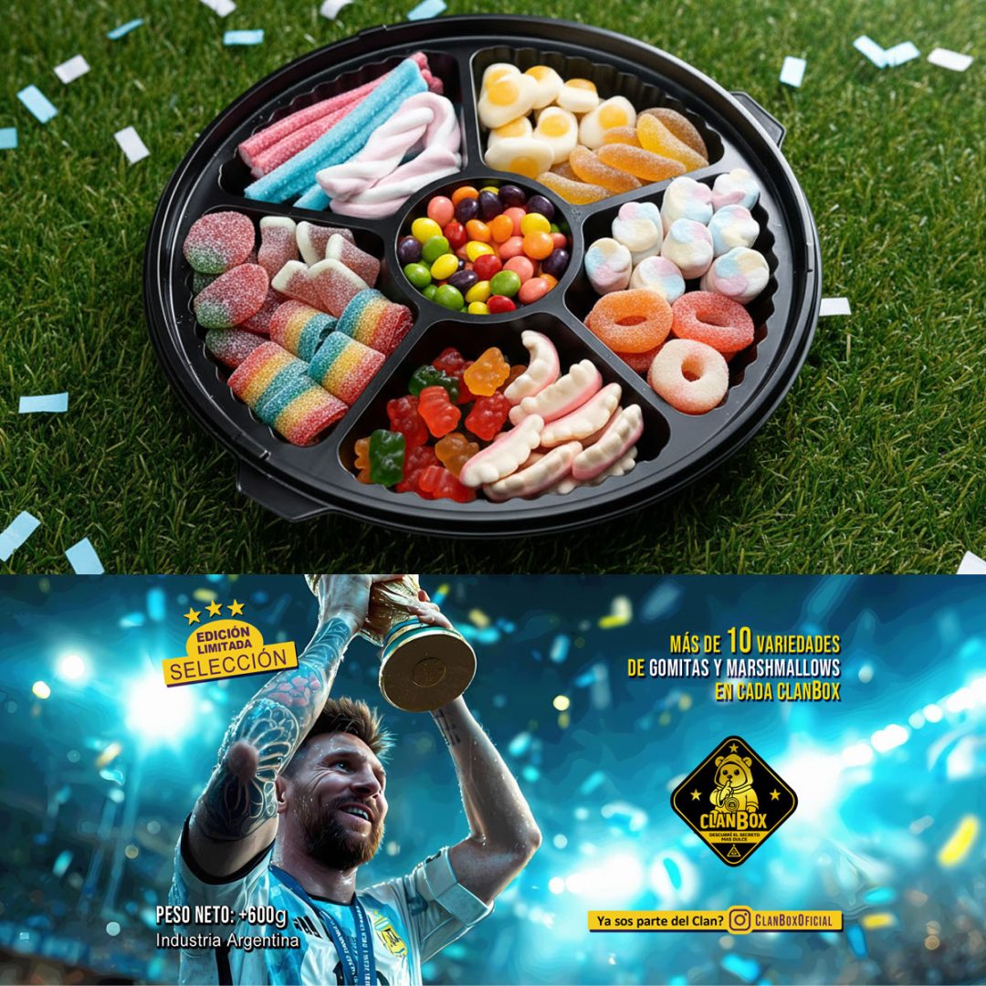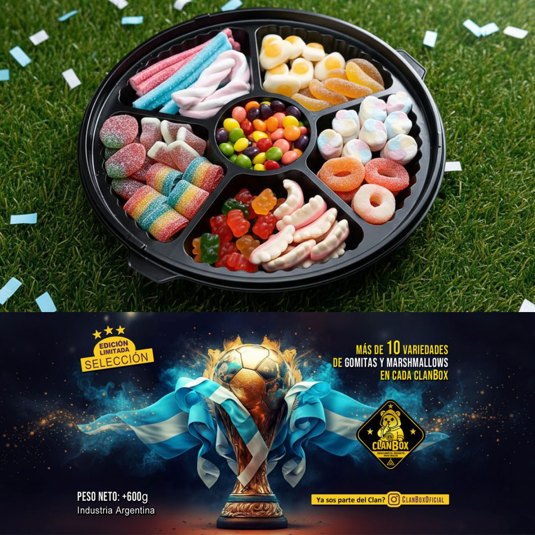 Una bandeja de gomitas premium de +600g, con diseño exclusivo de la Selección Argentina, lista para disfrutar, compartir y levantar la pasión albiceleste en cada bocado.