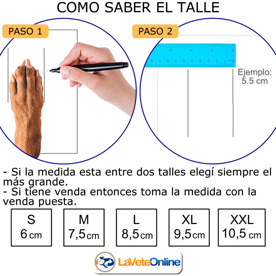 Para dar con el talle justo mirá la foto 3 donde encontrarás la guia para tomarle las medidas y la tabla de talles. Luego consulta por la publicación correspondiente porque el valor dle producto cambia según el talle. IMPORTANTE: Las medidas de las patas delanteras pueden diferir de las traseras por eso la caja viene con solo 2 unidades.