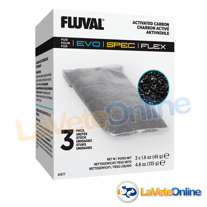 Caja con 3 bolsas de red con 45g de carbon activado cada una.