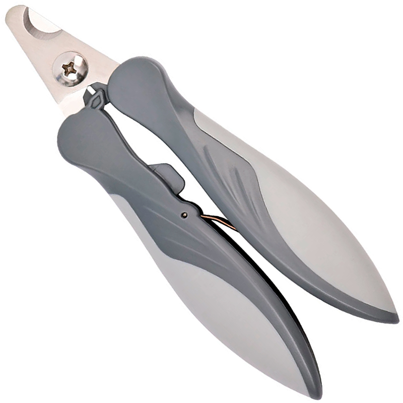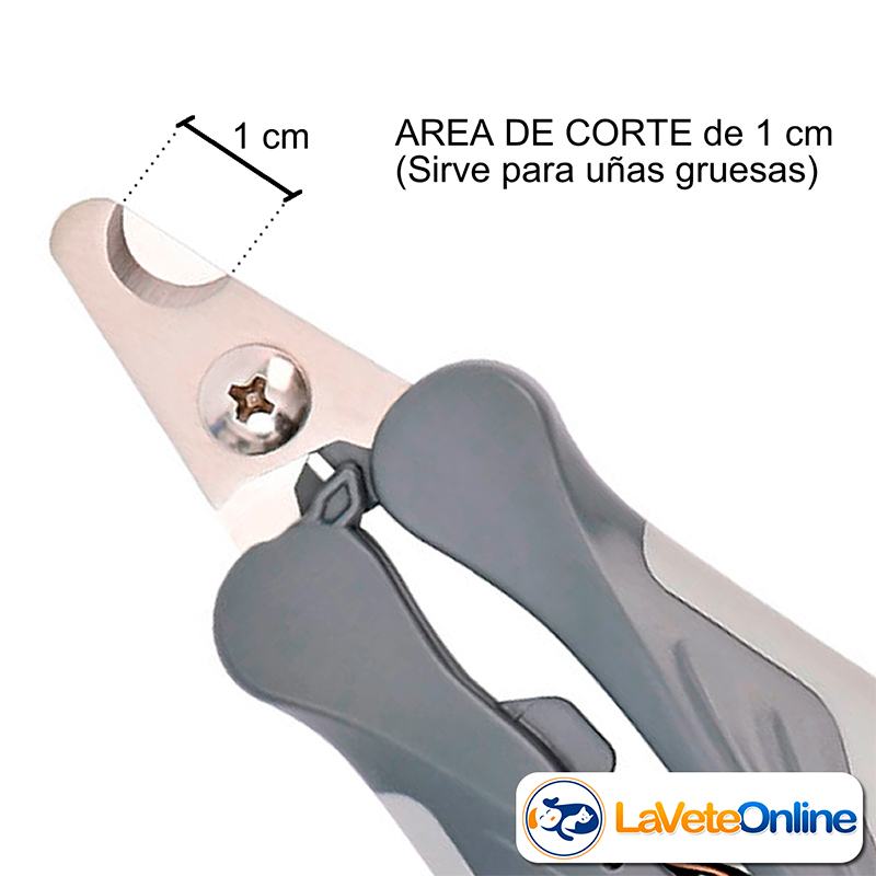 Corta uñas de acero inoxidable con excelente filo y amplia area de corte, apta para todos los tamaños de mascotas.