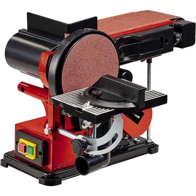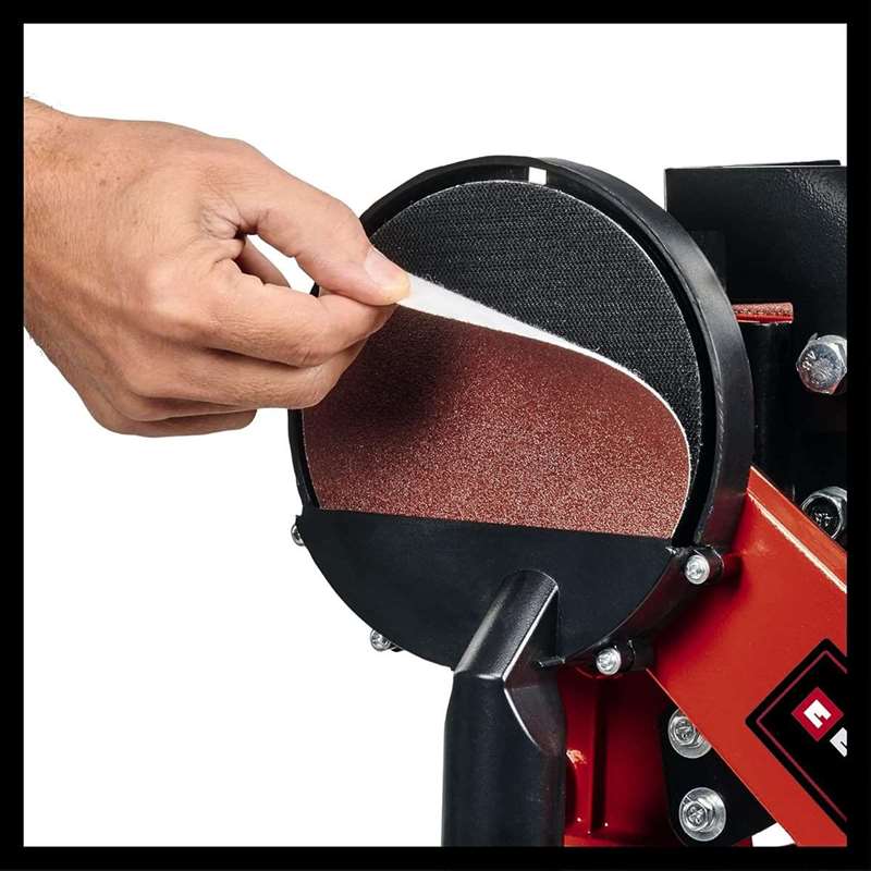 La esmeriladora de disco y banda vertical TC-US 380 es un ayudante de 380 W con función de lijado de banda y disco y dispone de un dispositivo de lijado de banda pivotable con tope de pieza de trabajo.