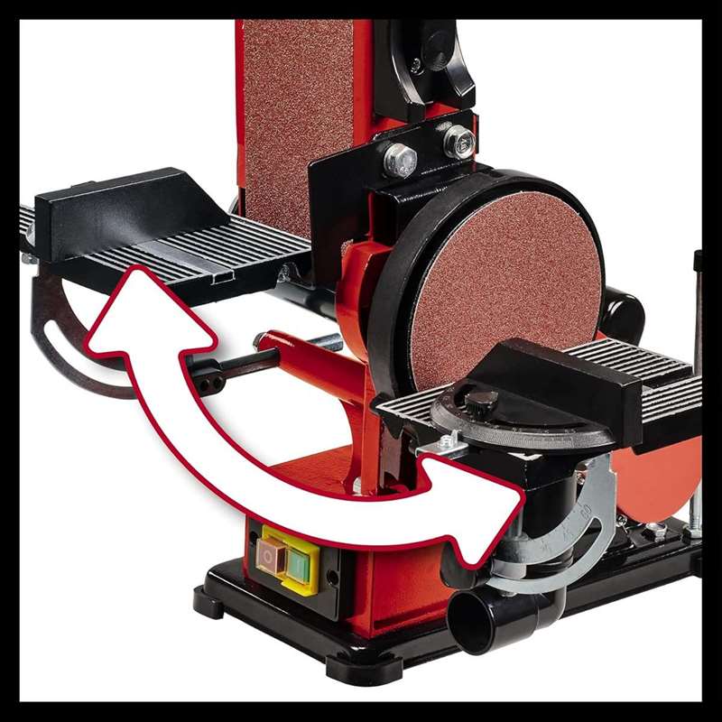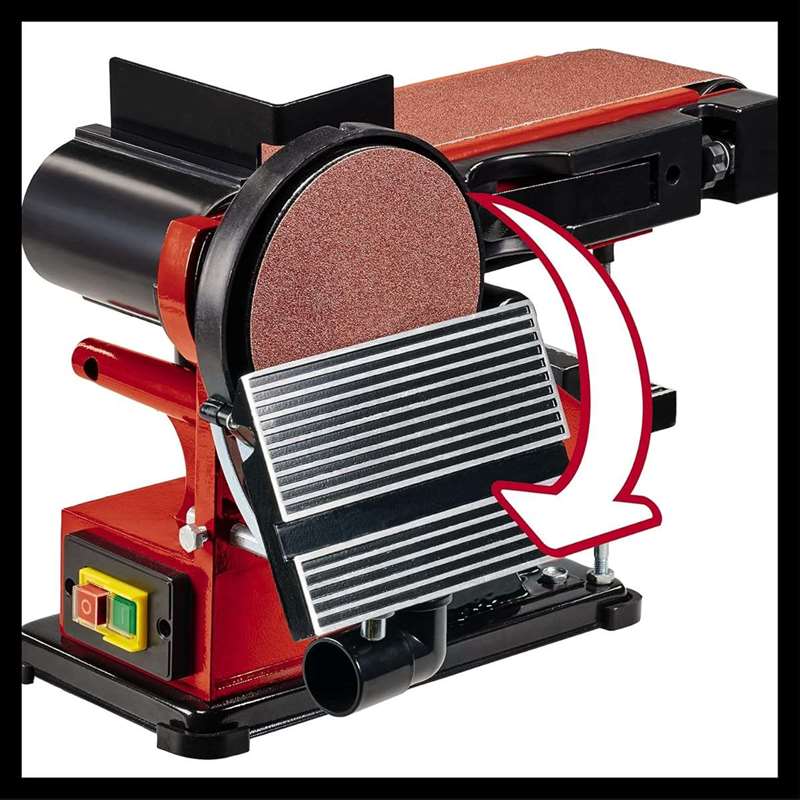 La mesa de apoyo de aluminio inclinable está fabricada estable y sin torsión, utilizable en la banda de disco de lijado y con una escala angular fácilmente legible para las múltiples posibilidades de uso.