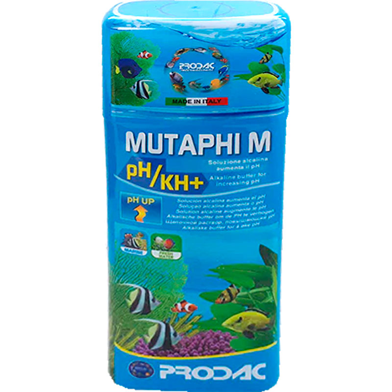 Los valores pH en el acuario de agua dulce en la mayoria de los casos están comprendidos entre 6,5 y 7,0 y en acuarios de agua marina están comprendidos entre 8,1 y 8,4. La disminución o el aumento de estos valores es muy peligroso para los peces. MUTAPHI Mutaphi pH+ es una solución que aumenta el pH hasta el valor deseado.