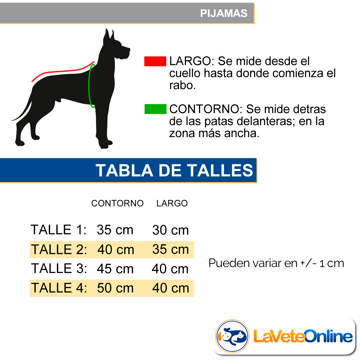 Tomale las medidas a tu mascota como indica en la 3era foto, si buscas otro talle consultanos y te pasamos el link.