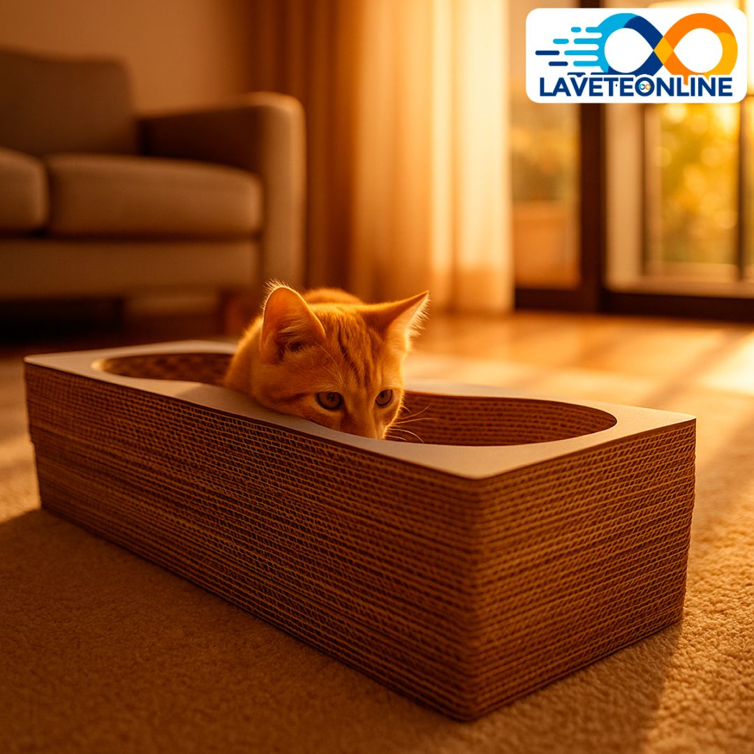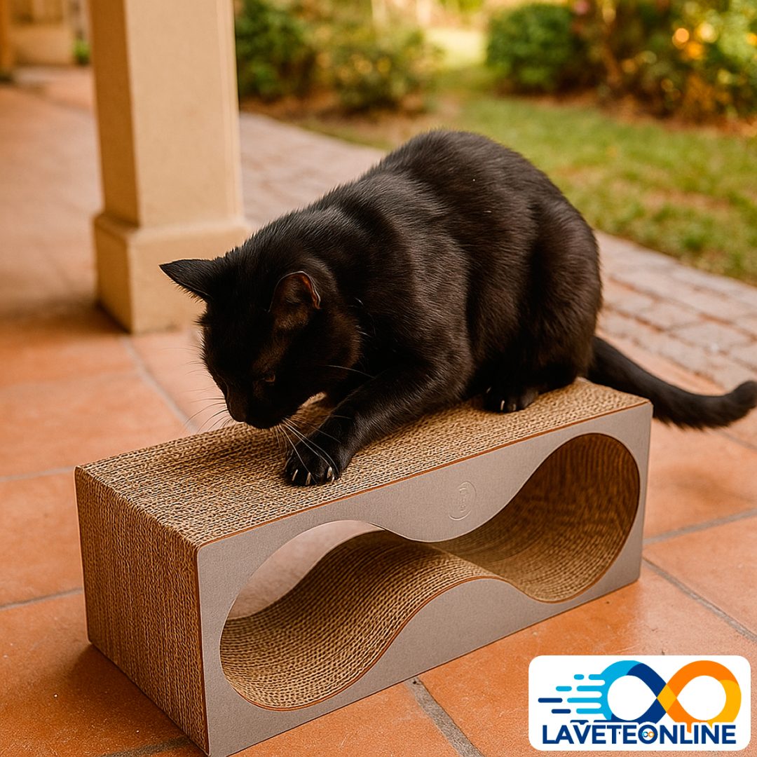 Cartón Reforzado: El material de cartón corrugado de alta densidad es irresistible para sus garras, y además, está diseñado para ser extra resistente y duradero.